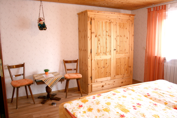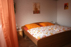 Das erste Schlafzimmer besteht aus einem Doppelbett, zwei Nachttischen, ein Kleiderschrank, ein kleiner Tisch, zwei Stühlen, ein Babybett kann aufgestellt werden.
