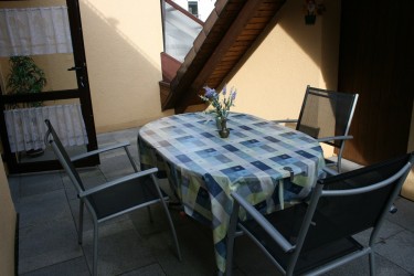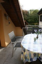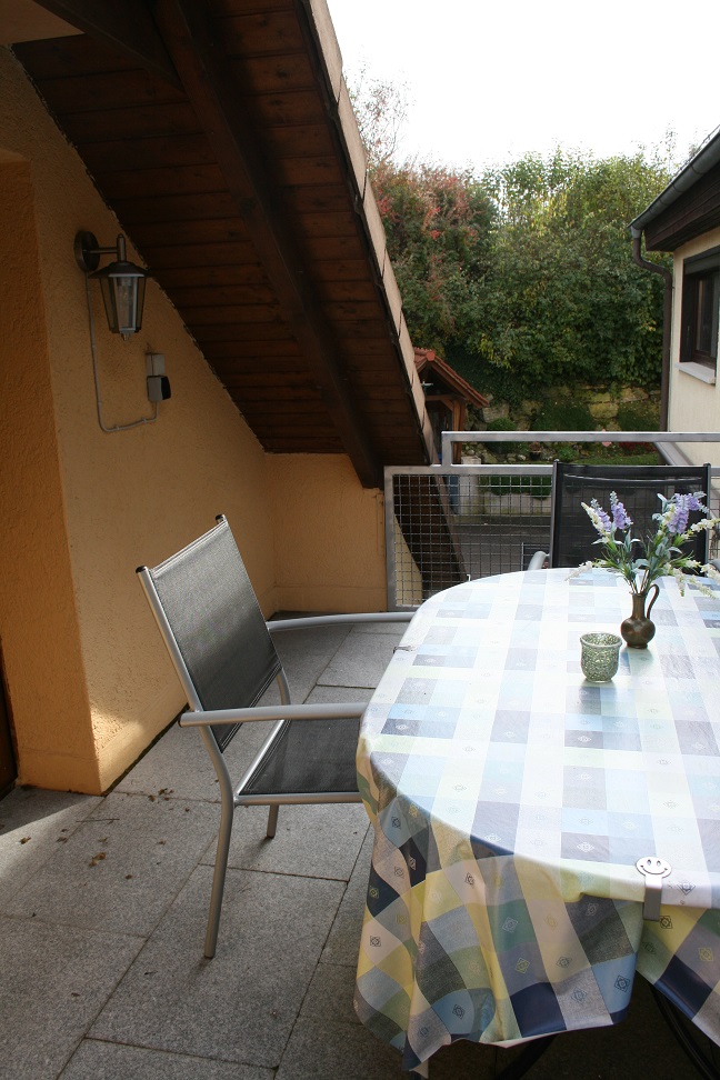 lassen Sie in ländlicher Ruhe Ihre Seele baumeln... auf gleicher Stockebene befindet sich eine Terrasse mit Gartenmöbel und Markiese.