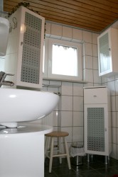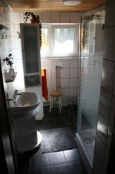 In unserem Badezimmer befindet sich eine Duschkabine, ein Waschbecken, ein Ankleidespiegel, ein Vergrößerungsspiegel, ein Haarfön, sanitäre Möbel und ein Hocker. Selbstverständlich stehen Ihnen auch Dusch und Handtücher zur Verfügung. Im separaten WC gibt es ebenfalls ein kleines Handwaschbecken. Gästetuch und Toilettenpapier werden von uns gestellt.